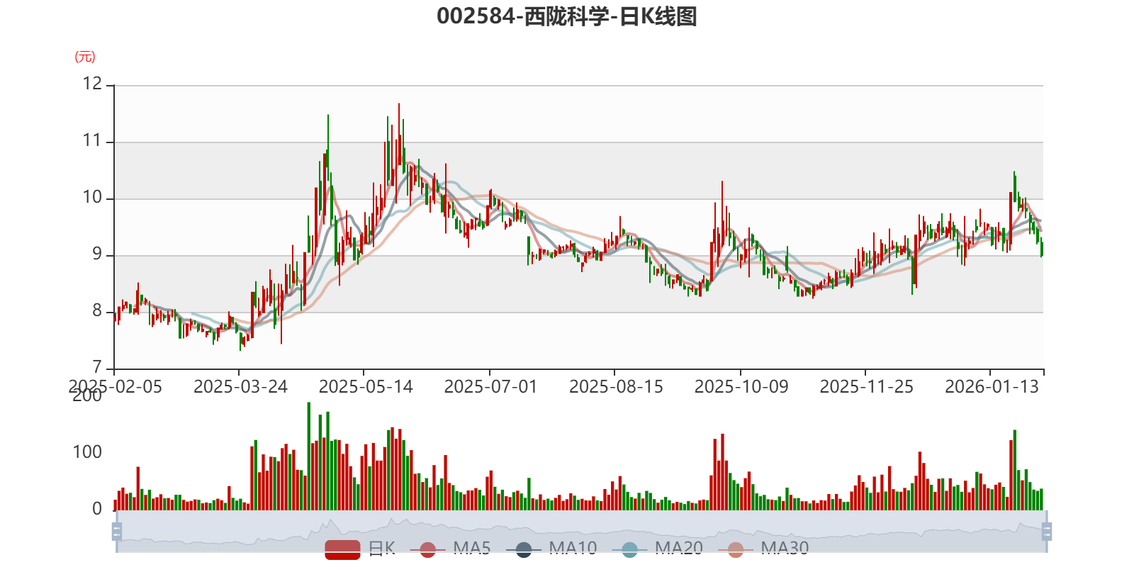 中证智能财讯西陇科学(002584)1月30日晚间披露2025年度业绩预告,预计2025年归母净利润亏损4000万元至7000万元,上年同期盈利6177.34万元;扣非净利润预计4800万元-7200万元,同比下降3.59%-35.73%;基本每股收益-0.07元/股至-0.12元/股。以最新收盘价计算,市净率(LF)约2.35倍,市销率(TTM)约0.74倍。