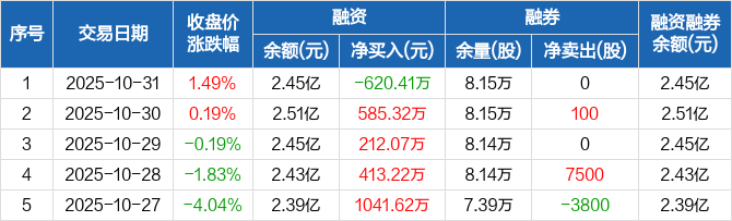 双星新材:融资净偿还620.41万元,融资余额2.45亿元(10-31)