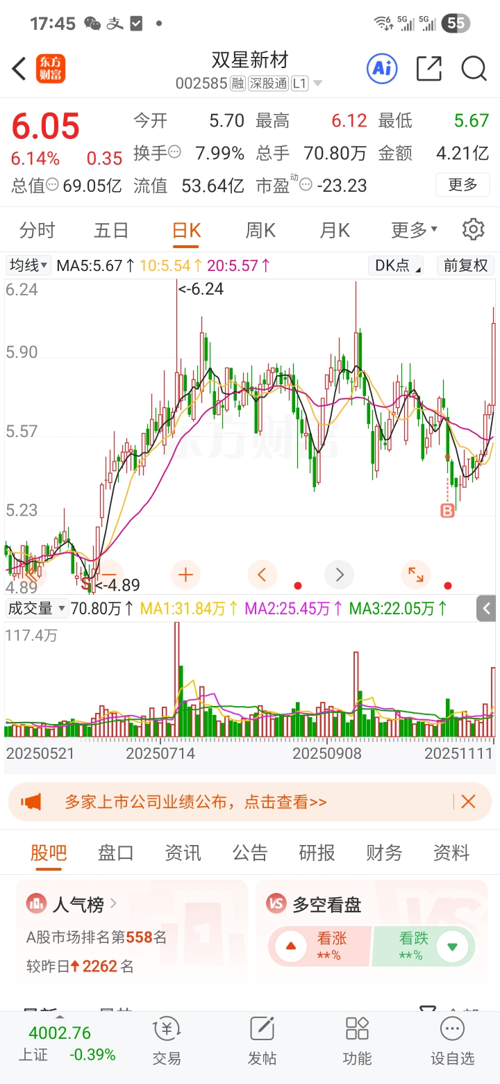 $双星新材(SZ002585)$ 可惜仓位没打满