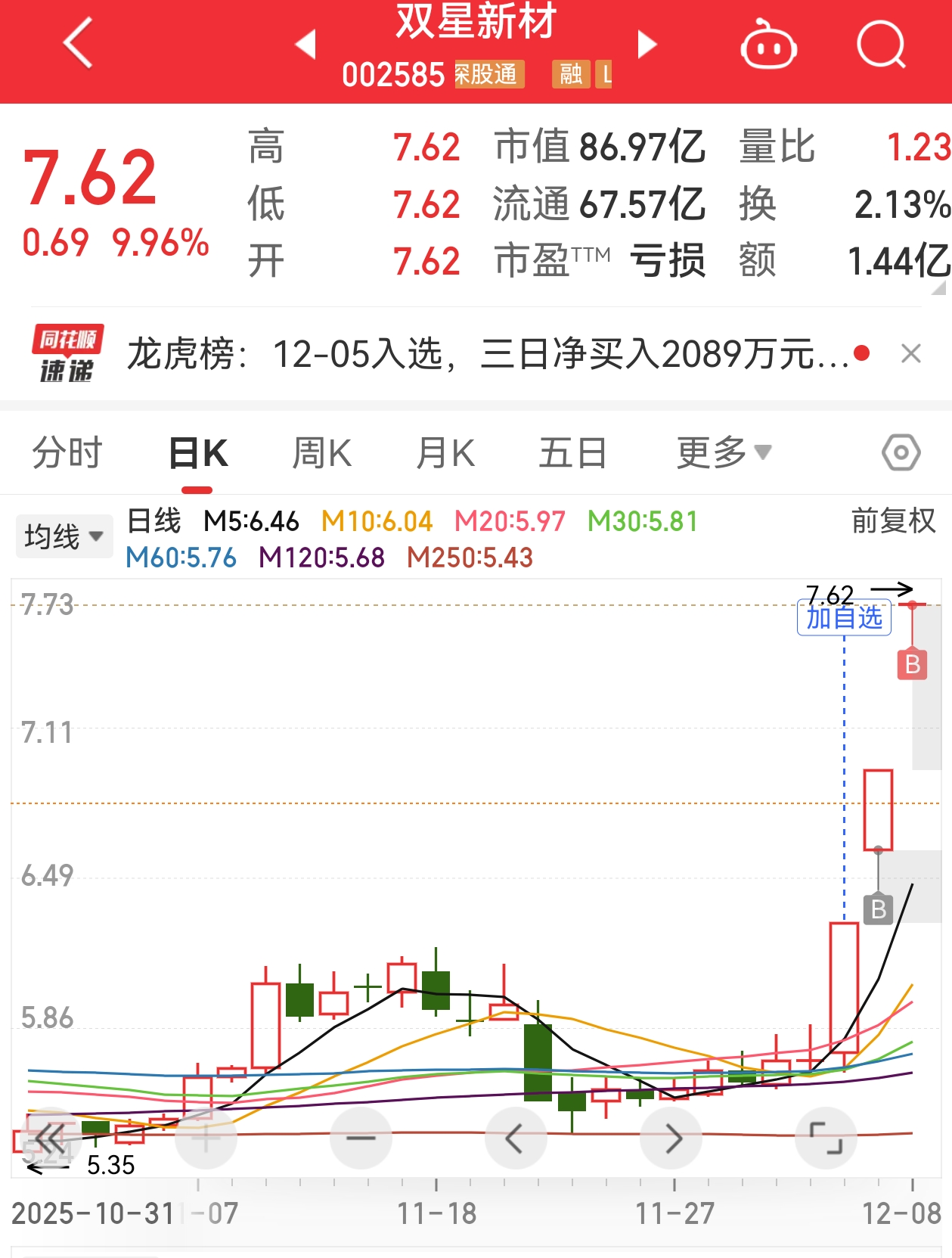 $双星新材(SZ002585)$ 我昨天13点21分的隔夜单进来了