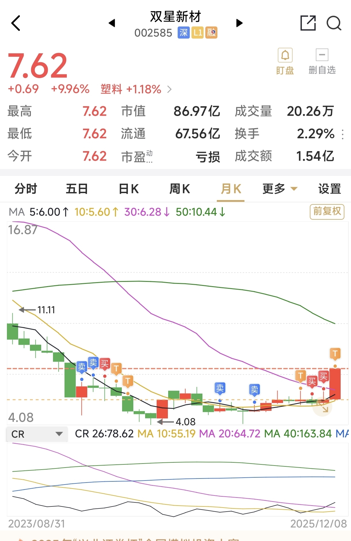$双星新材(SZ002585)$ 拿了好久了,最后一次补仓。