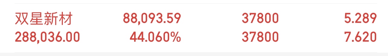 $双星新材(SZ002585)$ 利润还可以,继续加油