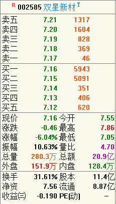 今天这换手率,双星的行情可能还未结束!昨天涨停板刚出,本来不想关注这股了,但今天