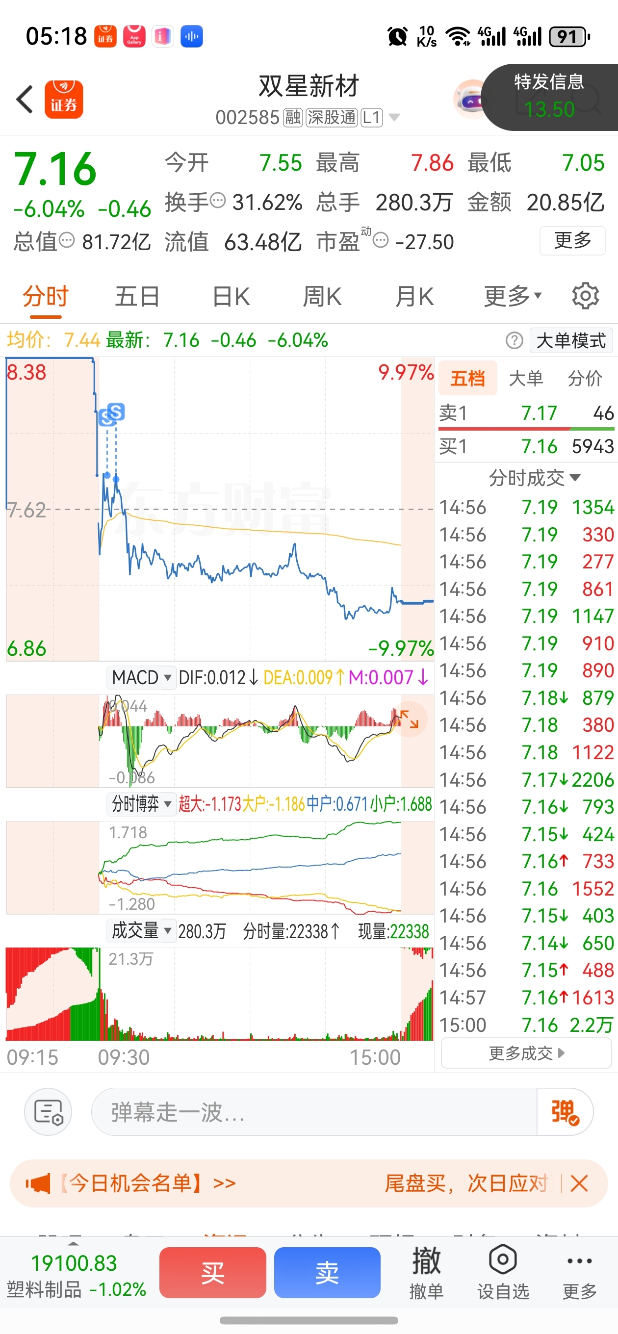 $双星新材(SZ002585)$ 对不起兄弟萌,是我砸的盘