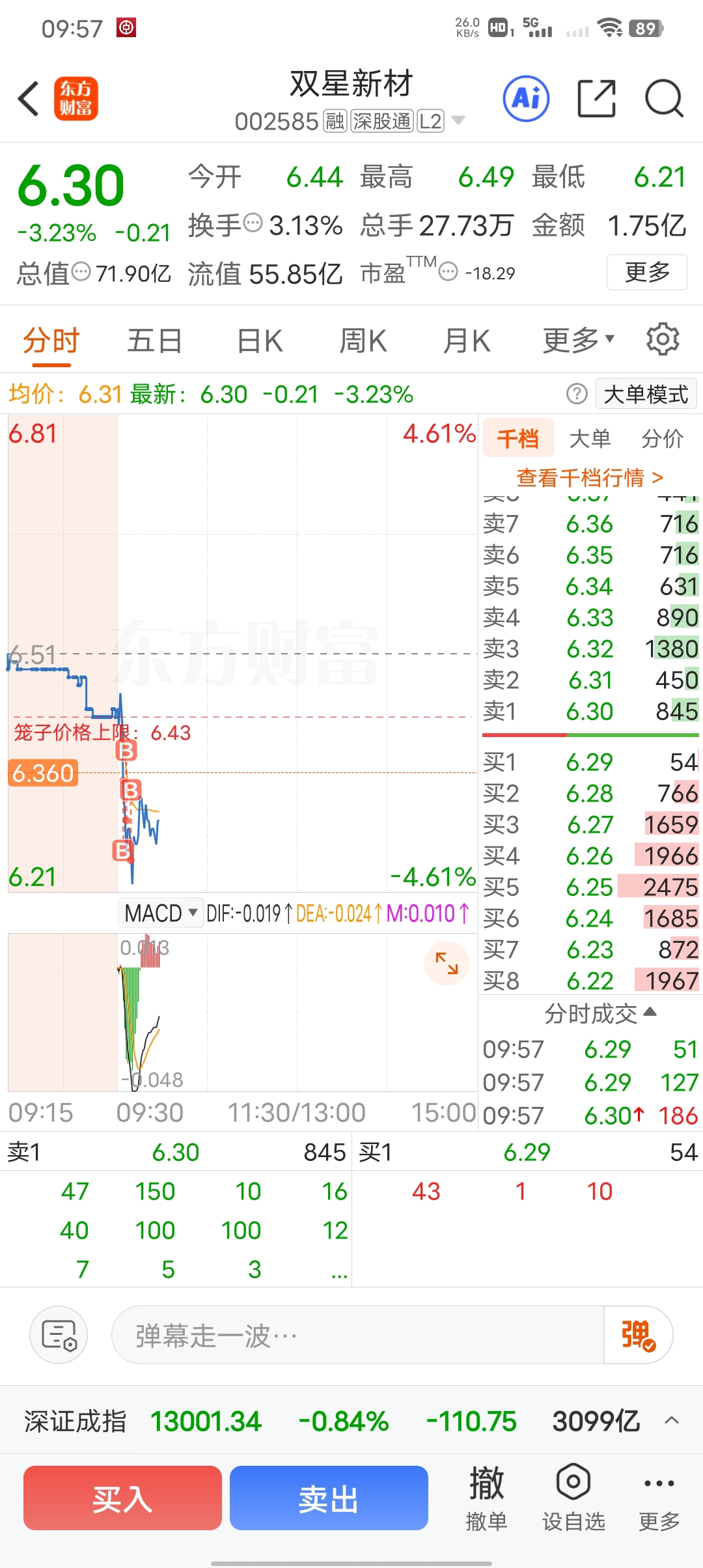 $双星新材(SZ002585)$ 别人都跌停了,为什么你才跌这么点