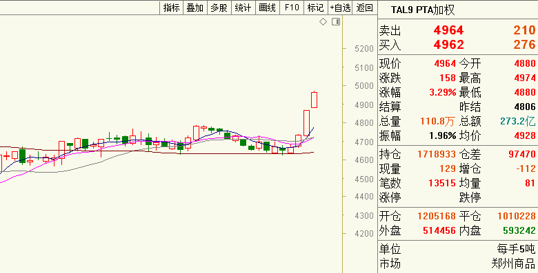化工产品涨价序幕徐徐拉开!双星主力产品BOPET膜的主要原材料PTA期货价格连涨