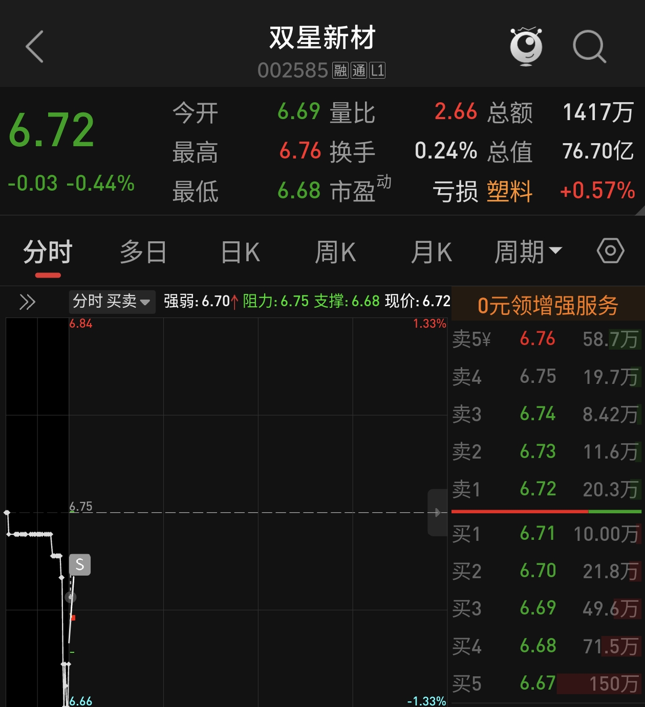 $双星新材(SZ002585)$ 感谢主力不杀之恩