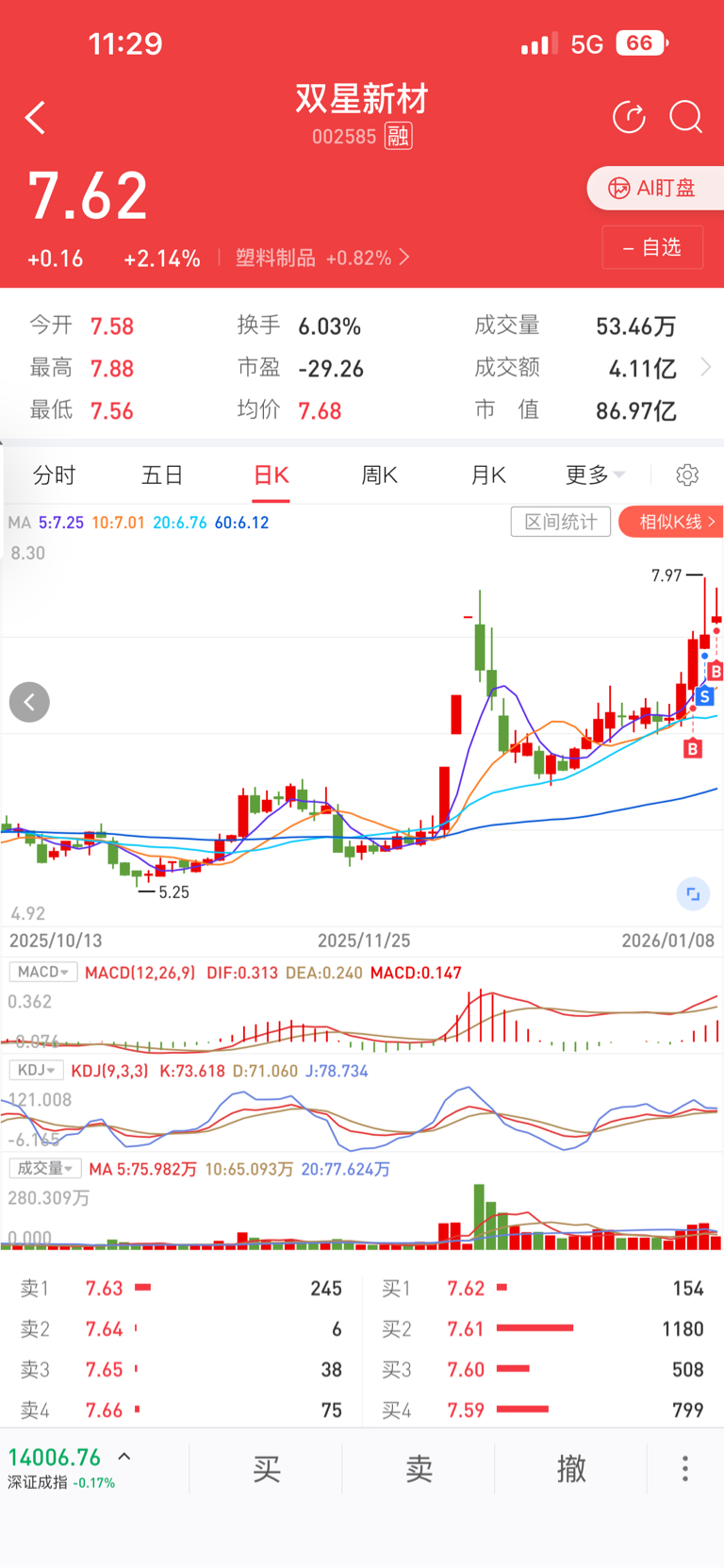 $双星新材(SZ002585)$ 废了,昨天7.73跑路,今天7.73又被骗进去了