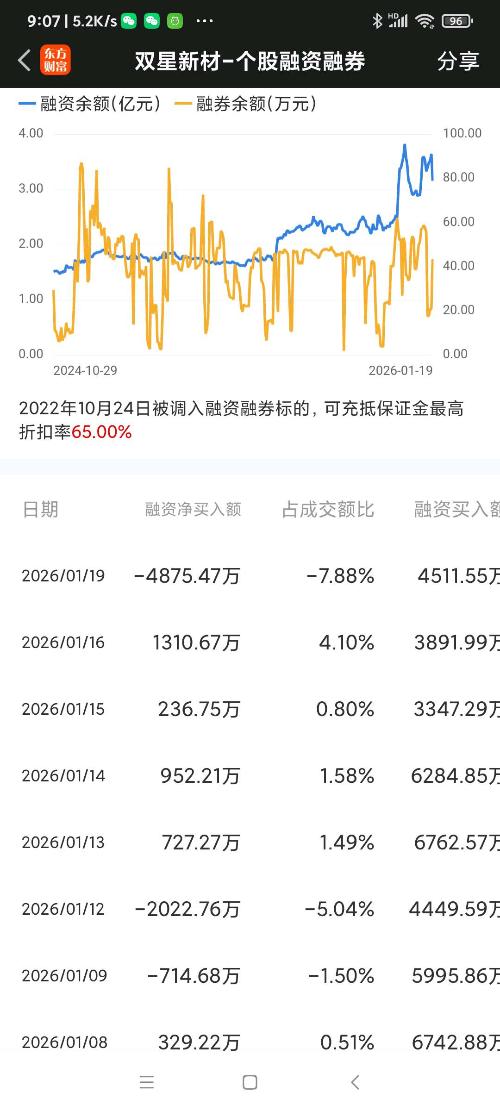 好消息,双星新材的庄家,昨日很成功地把融资盘洗出去五千万,手法了得,卸去了一个大