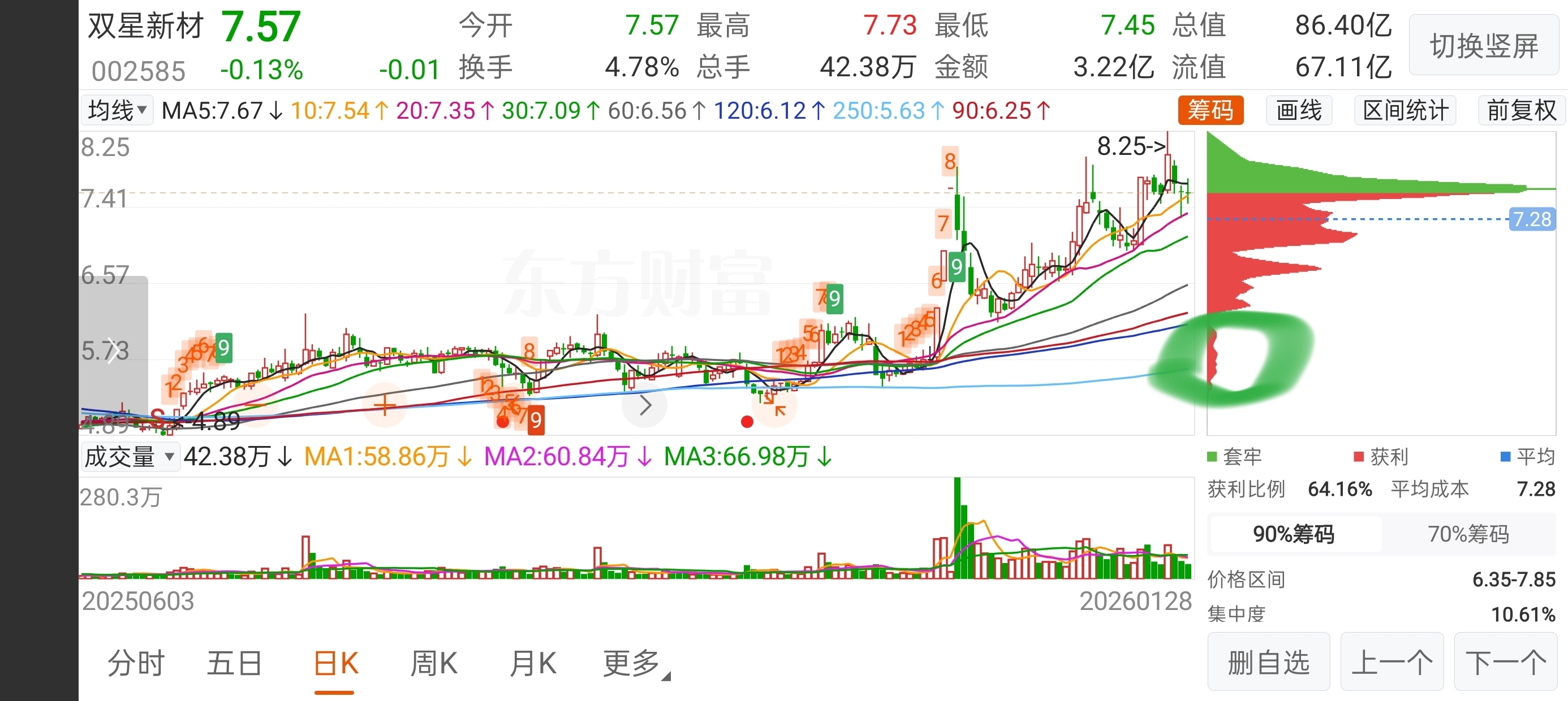 $双星新材(SZ002585)$ 要挖坑至少挖到这个区间,价值洼地就出来了。