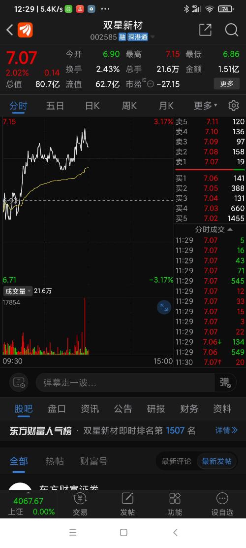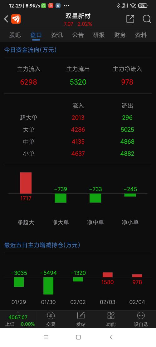 我说的双星新材,主力仍在其中,6.8元一带低吸,大话没说错吧?