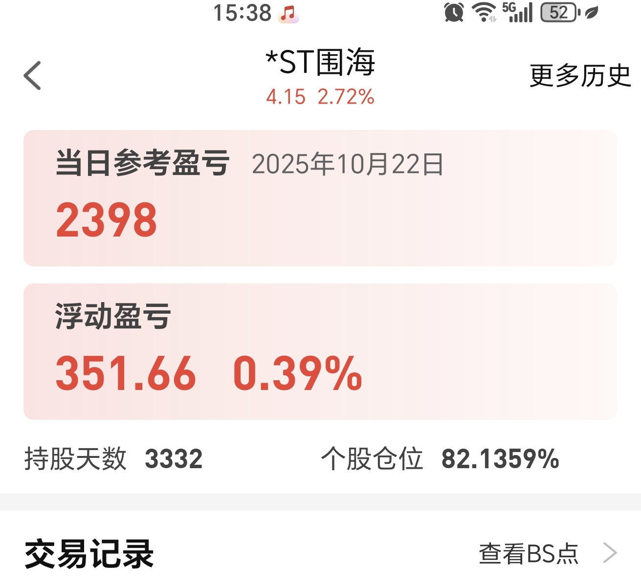 持股3333天 从围海股份收购千年设计前一直套到现在,终于解套了。虽然只有9万出头的钱,但对打工族来讲也是一大笔钱。感谢红包先生和婕姐。还好在最黑暗时刻没有割肉。愿老围海们都能解套 ,也真心期待围海股份早日摆脱困境,给光大老股民一个满意的答卷