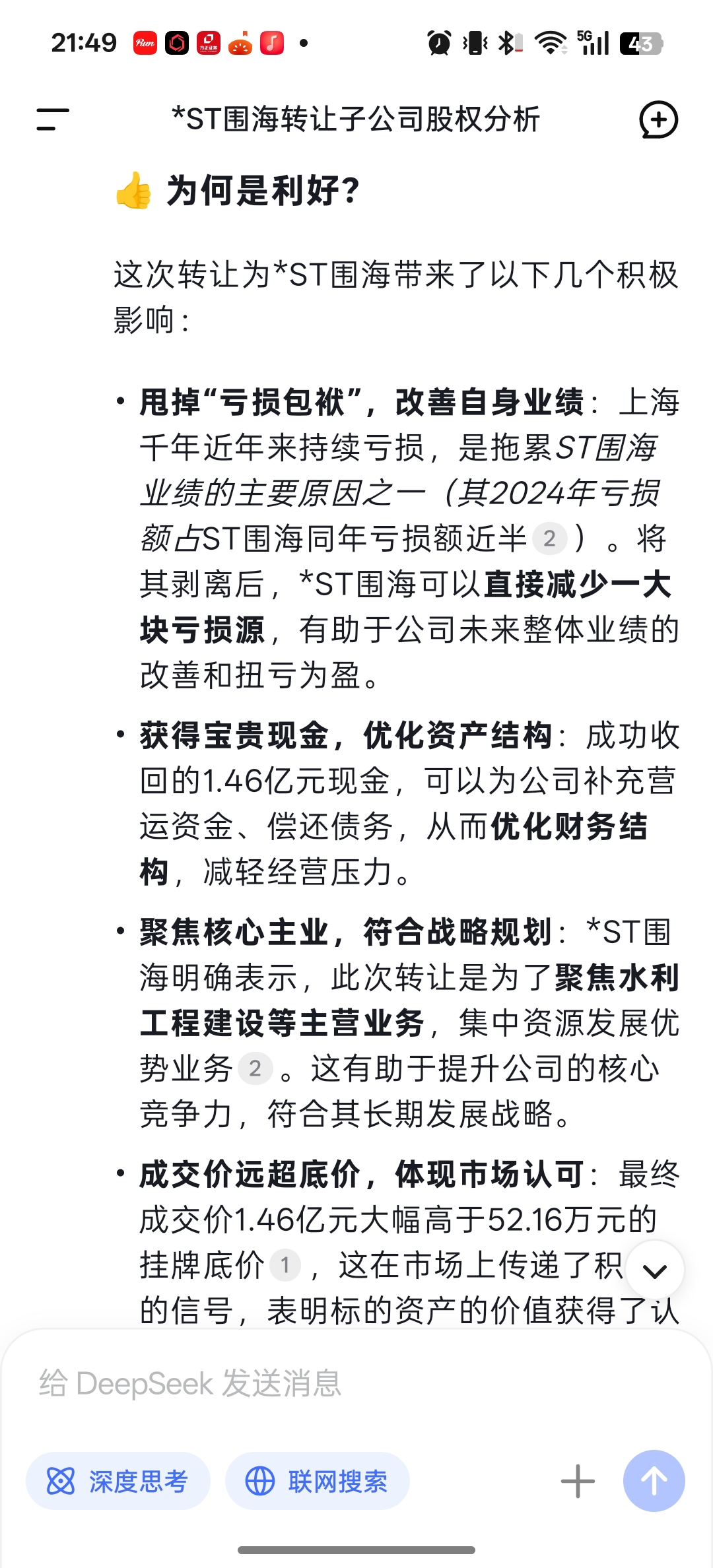 $*ST围海(SZ002586)$ 绝对的利好!明天直接板了!