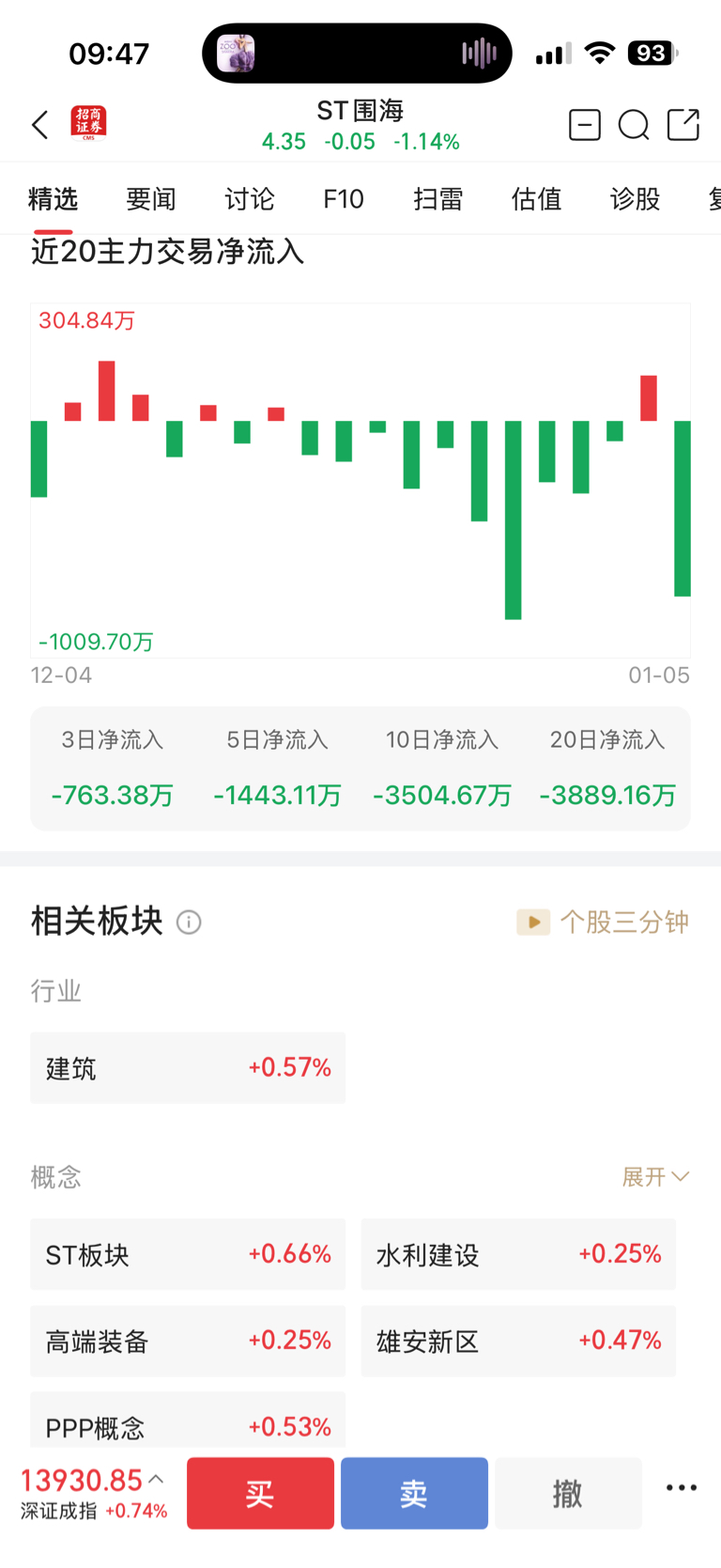$ST围海(SZ002586)$ 主力怎么一直在卖