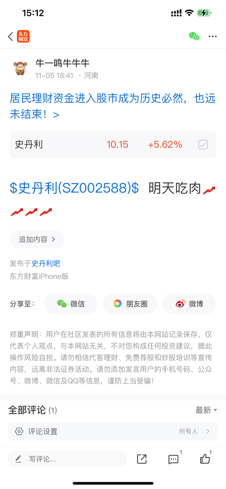 温馨提示: 1.根据《证券法》规定,禁止编造、传播虚假信息或者误导性信息,扰乱证券市场;2.用户在本社区发表的所有资料、言论等仅代表个人观点,与本网站立场无关,不对您构成任何投资建议。用户应基于自己的独立判断,自行决定证券投资并承担相应风险。《东方财富社区管理规定》