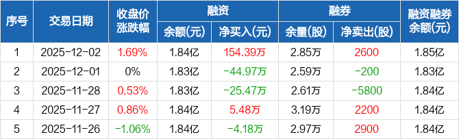 史丹利:融资净买入154.39万元,融资余额1.84亿元(12-02)