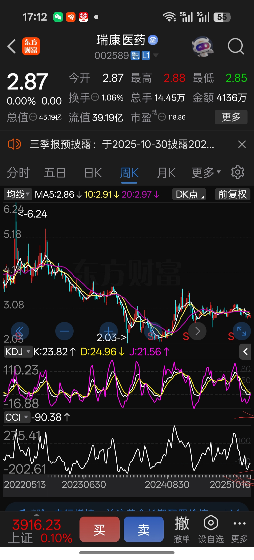 $瑞康医药(SZ002589)$ 周线大级别要反弹,看如下图。