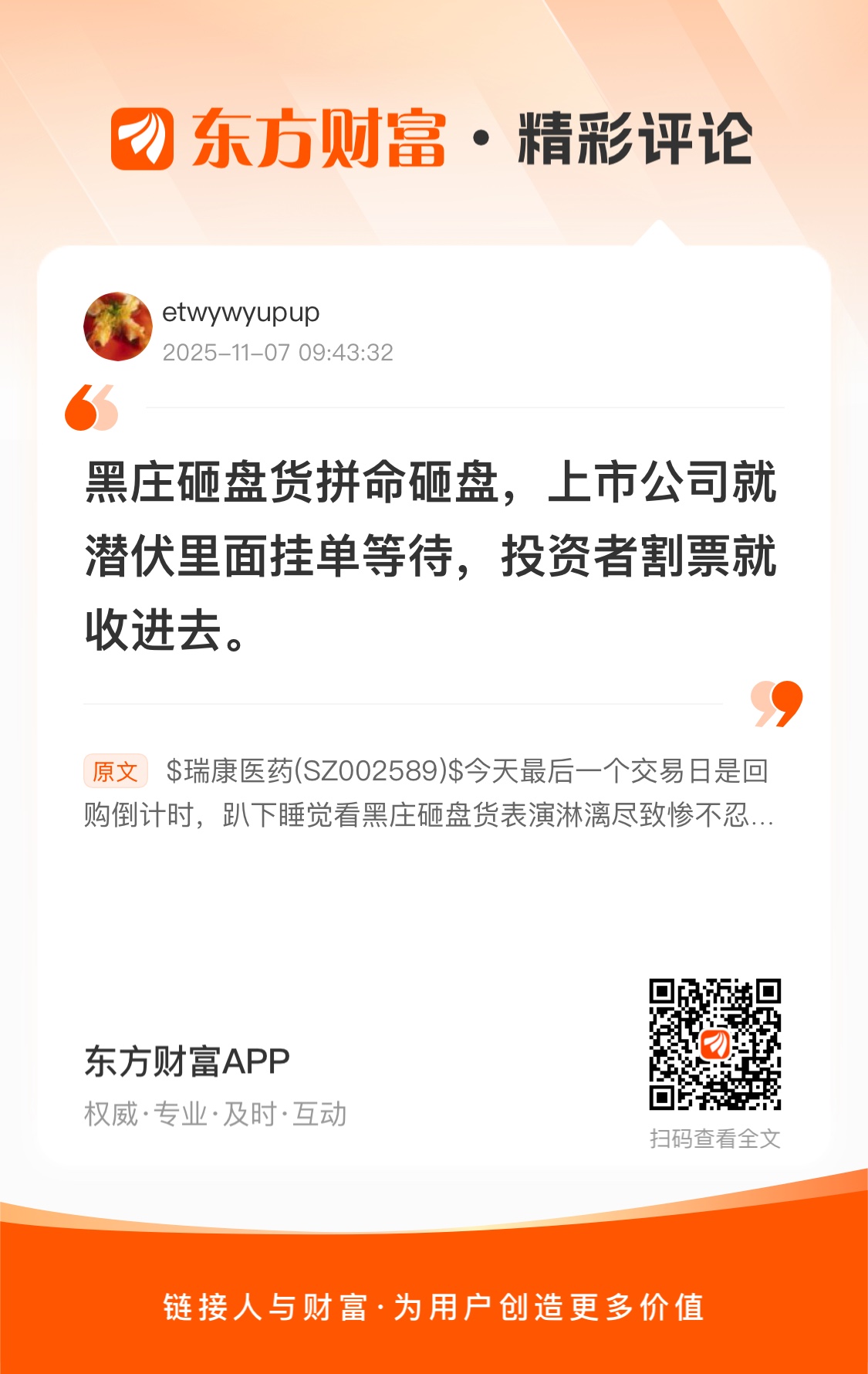 //@etwywyupup : 黑庄砸盘货拼命砸盘,上市公司就潜伏里面挂单等待,投资者割票就收进去。蚂蚁集团CEO韩歆毅于今日发布全员信,宣布原“蚂蚁数字医疗健康事业部”正式升级为“蚂蚁健康事业群”,加速医疗健康业务成为蚂蚁的新战略支柱板块$瑞康医药(SZ002589)$ $联合健康(NYSE|UNH)$ $三倍做多富时中国ETF-Direxion(AMEX|YINN)$