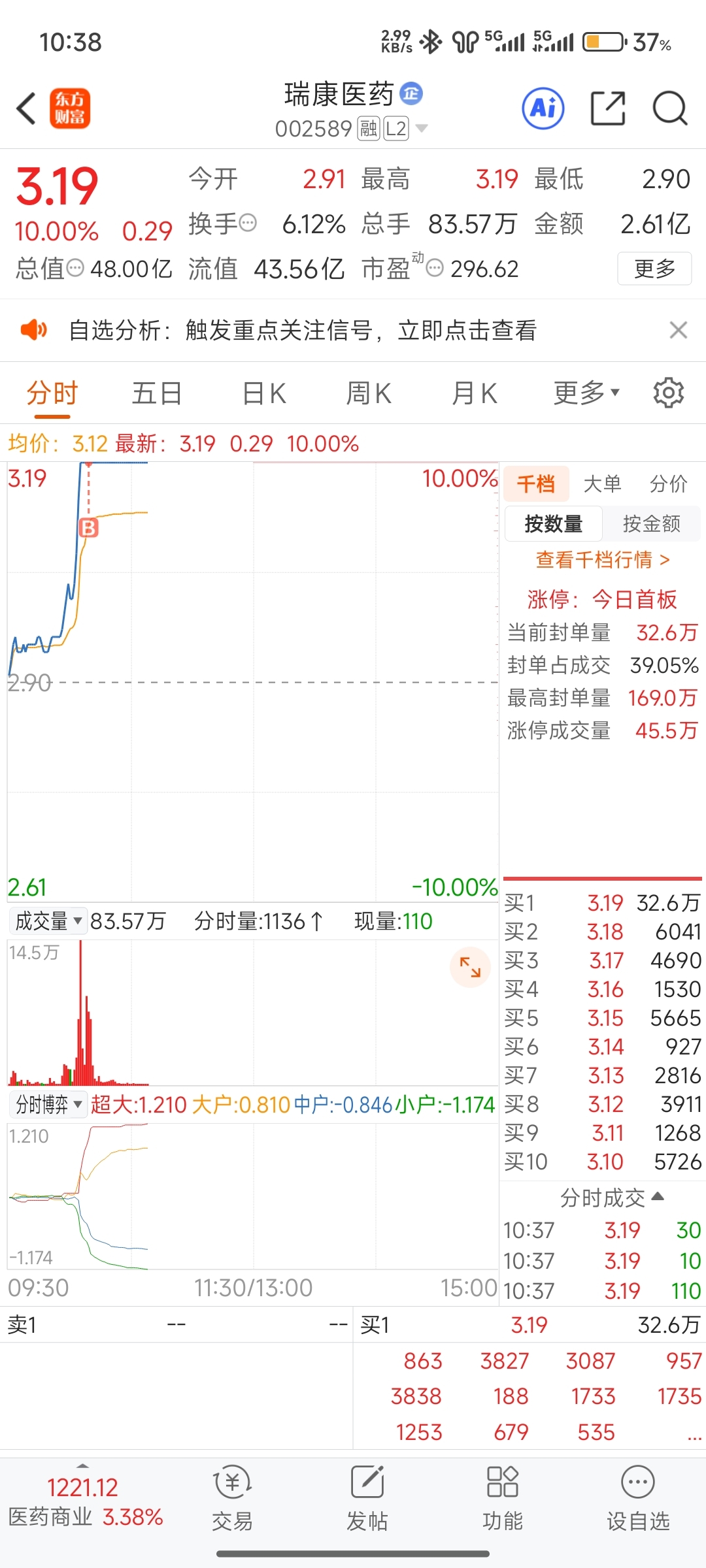 $瑞康医药(SZ002589)$ 明天有溢价吗