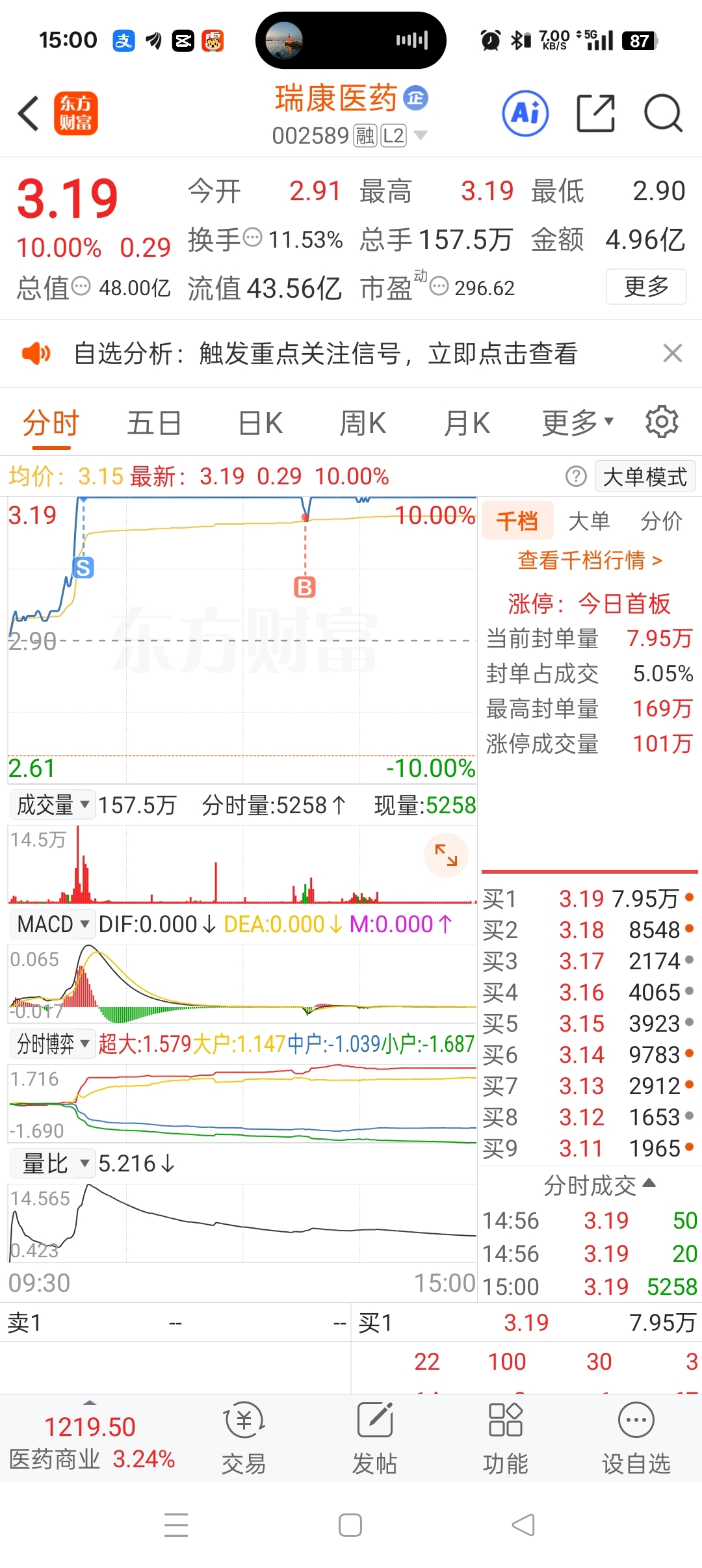 $瑞康医药(SZ002589)$ 被炸出来了,想了想还是买回来算了,低位愿意赌一把