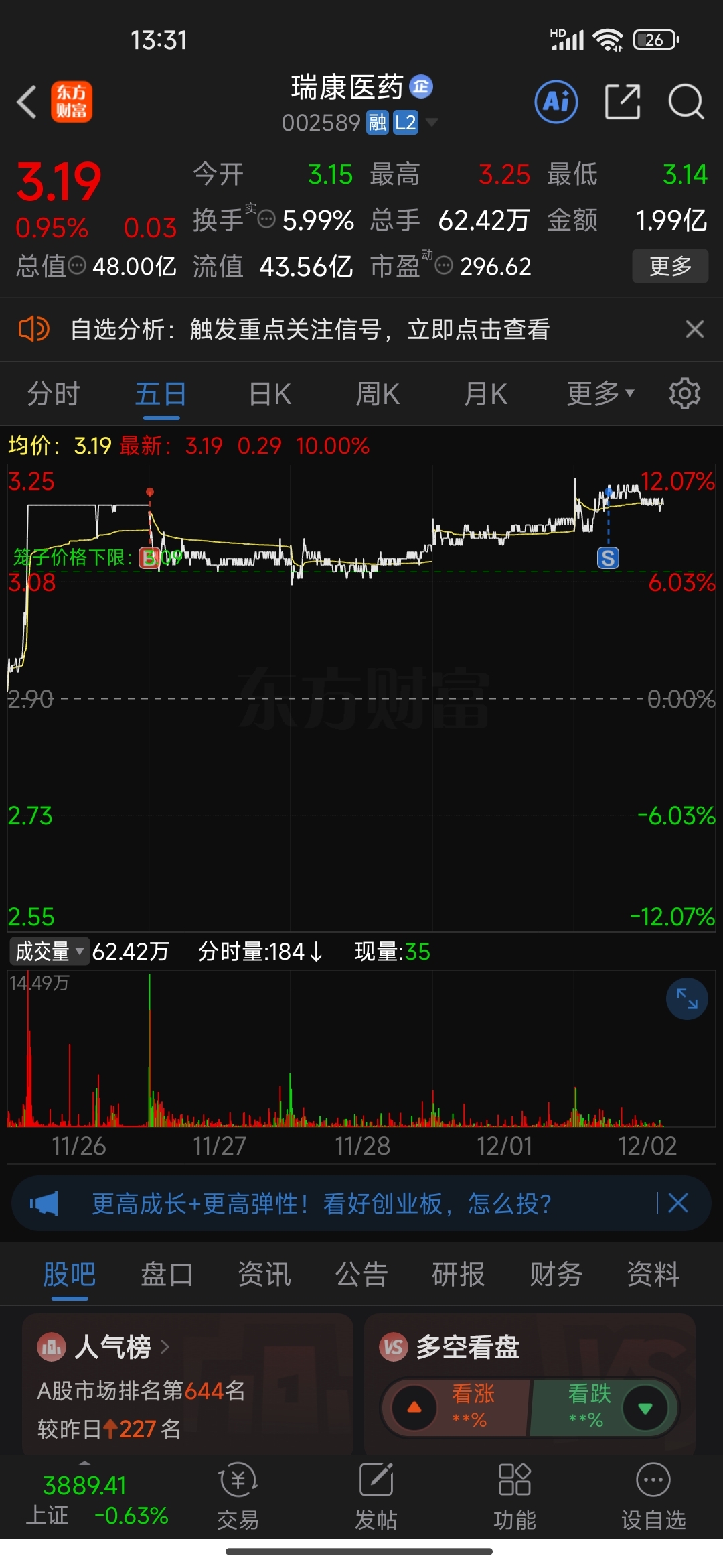$瑞康医药(SZ002589)$ 弱几保本出掉了,第一个板海王瑞康二选一,选了这个