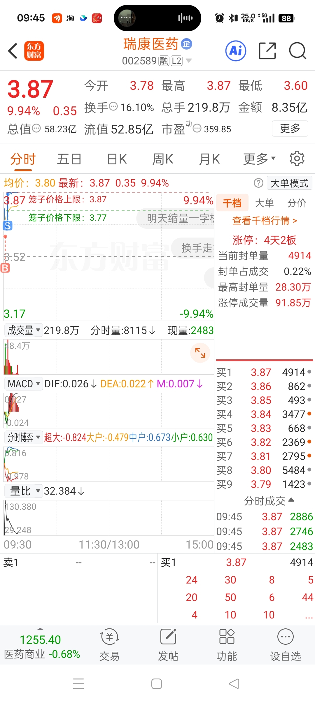 $瑞康医药(SZ002589)$ 洗出去了