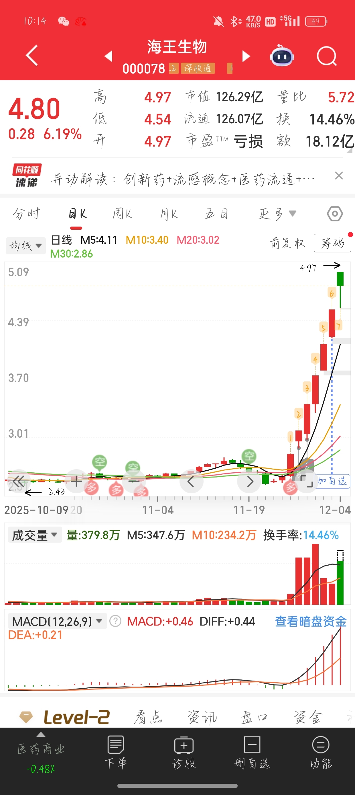 $瑞康医药(SZ002589)$ 板上试抛压 然后疯狂吸筹 看海王二板就知道了 卖飞