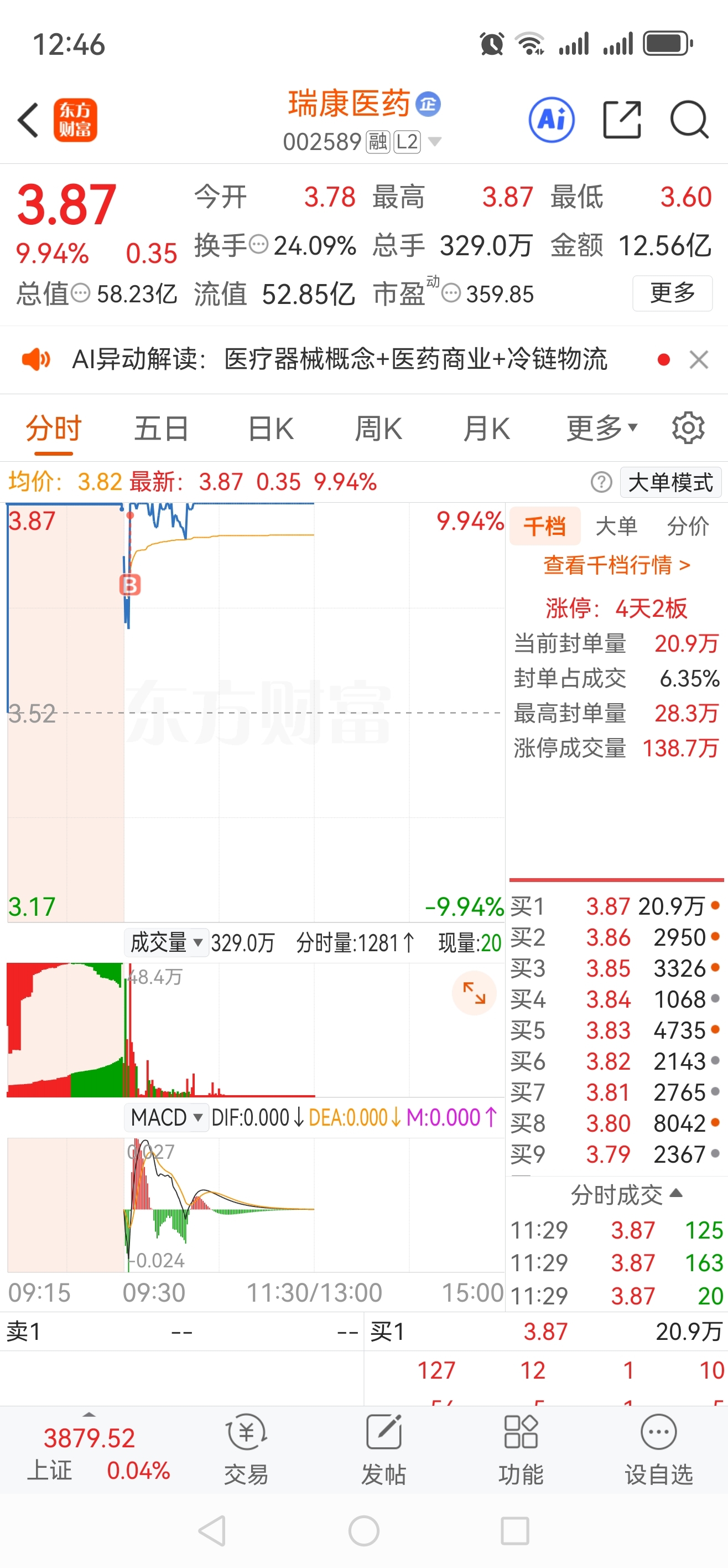 $瑞康医药(SZ002589)$ 海王的补涨,至少5板