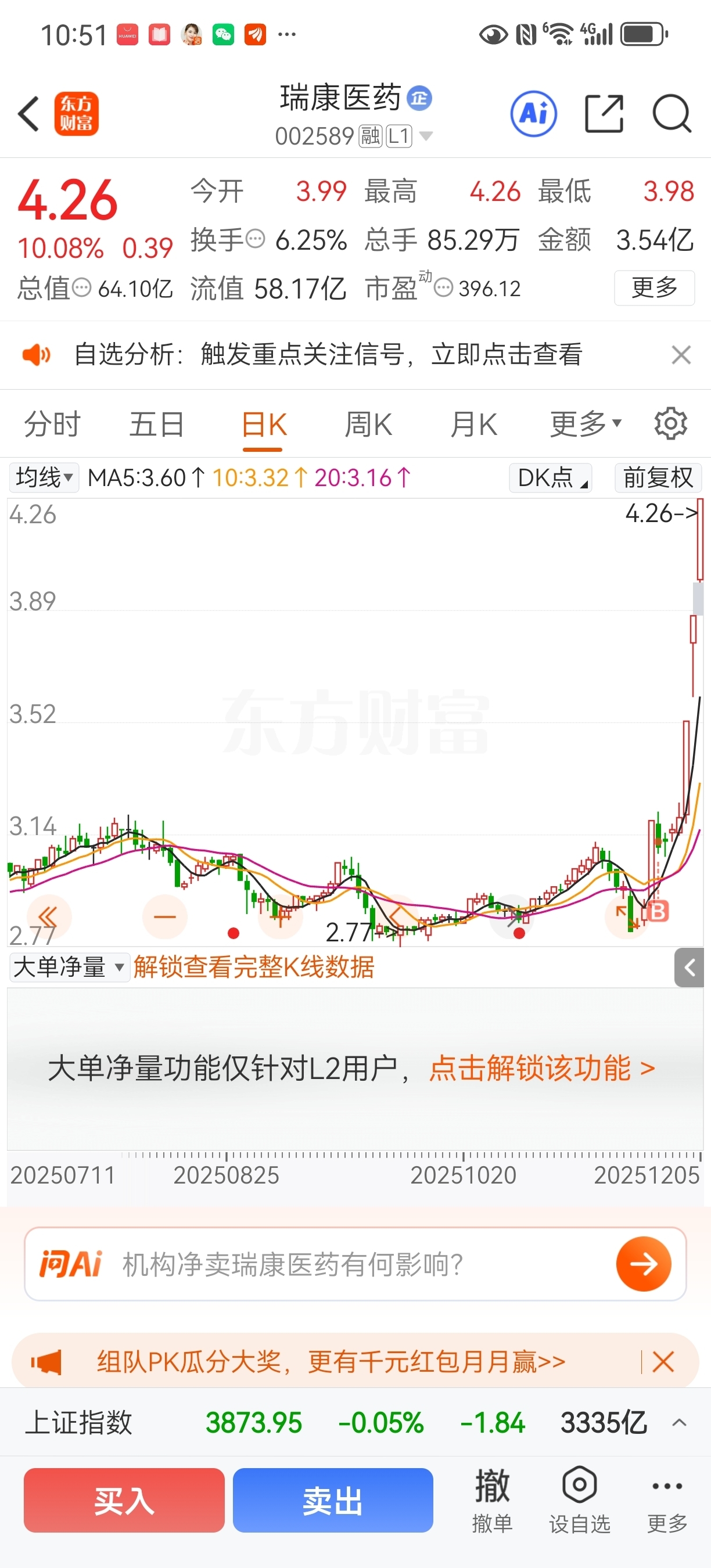 $瑞康医药(SZ002589)$ 好消息买到连板了,坏消息只有1000股哈哈