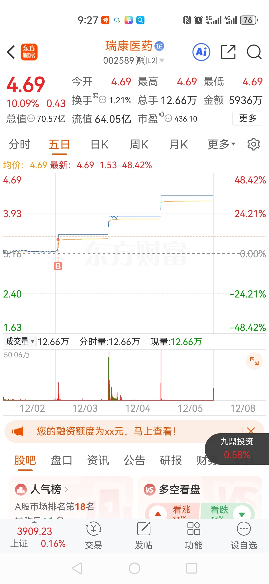 $瑞康医药(SZ002589)$ 随便买个几千块的嗷嗷连板,重仓的天天横盘