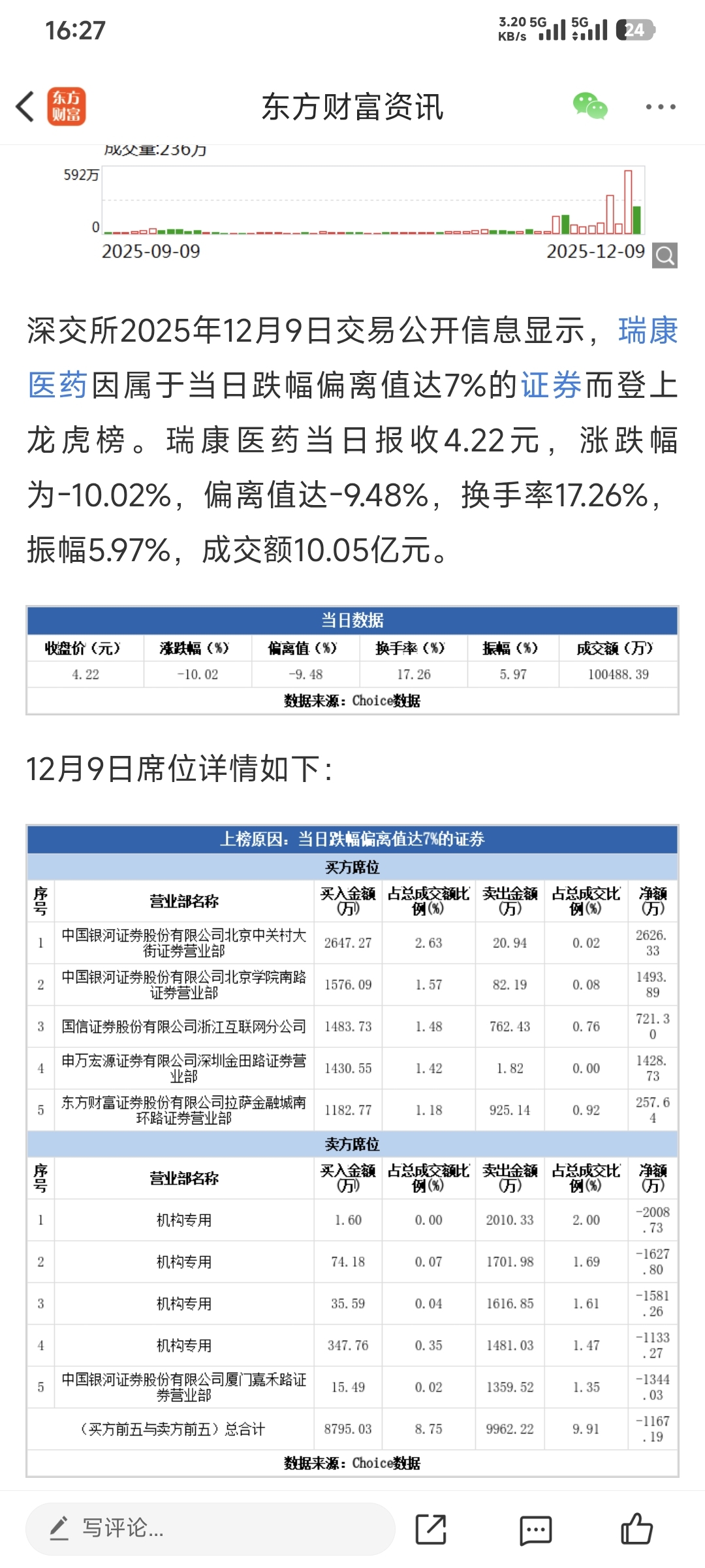 $瑞康医药(SZ002589)$ 完了,昨天那几个机构,都没出一半,就跌停了,明天要是再砸,不得又一个跌停