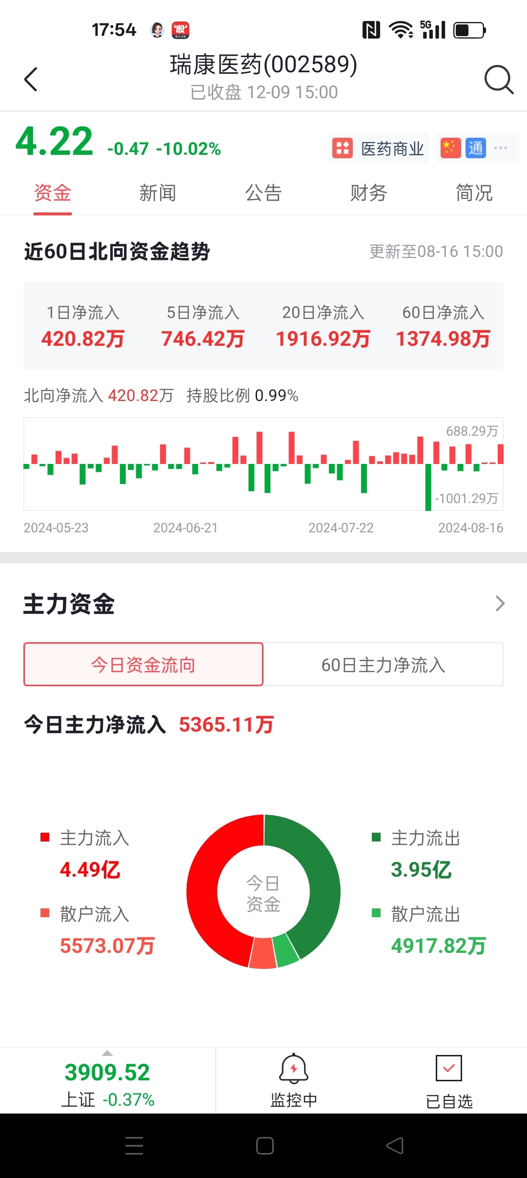 $瑞康医药(SZ002589)$ 今天居然是流入资金,跑的全是机构看来明天有机会啊