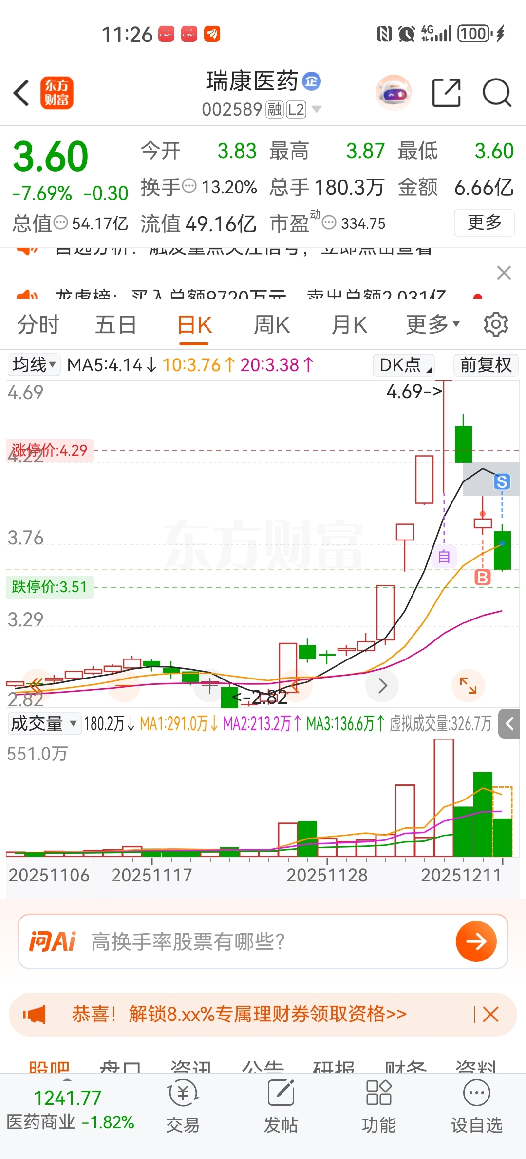 $瑞康医药(SZ002589)$ 这种票就适合小仓位搏一下运气