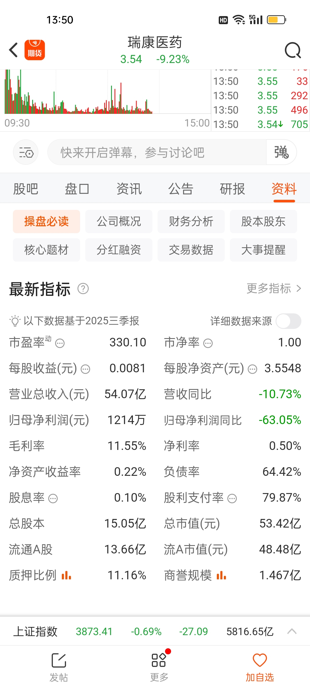 $瑞康医药(SZ002589)$ 3.55是净资产。跌破就割了。不破就留一下。这个股庄家还是良心庄,不按死。?罪恶心的是峨眉山。直接按跌停。。。割肉都没有机会割。给你点个赞。不按死的庄家就是良心庄家