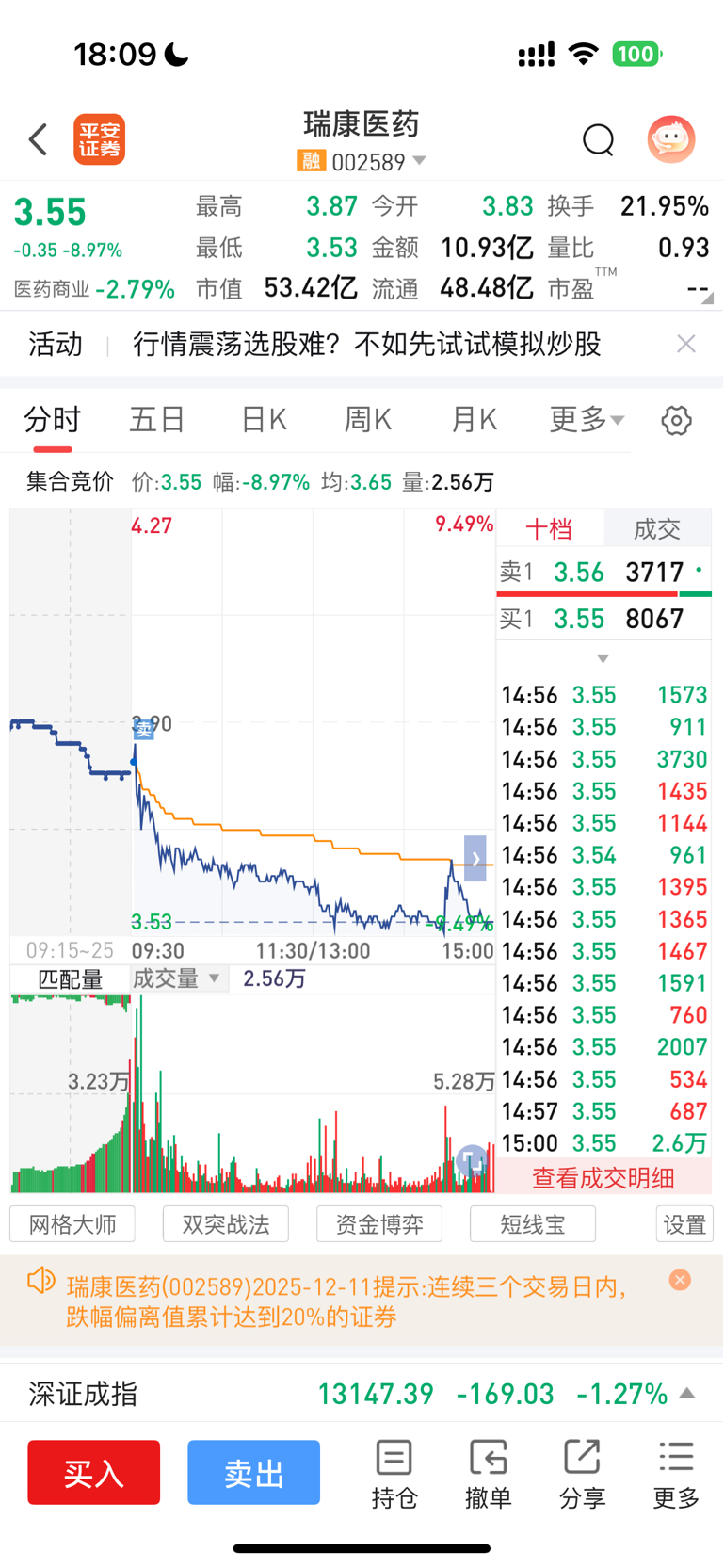 $瑞康医药(SZ002589)$