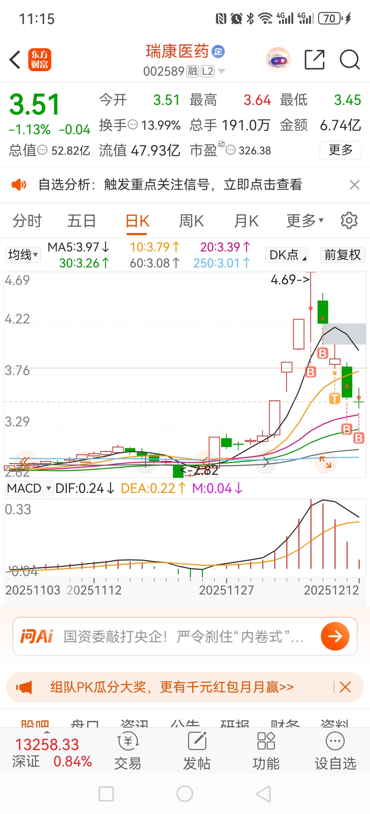 $瑞康医药(SZ002589)$ 反正是一股不卖,只做加仓!跌我加筹码!我就是一个死多头,