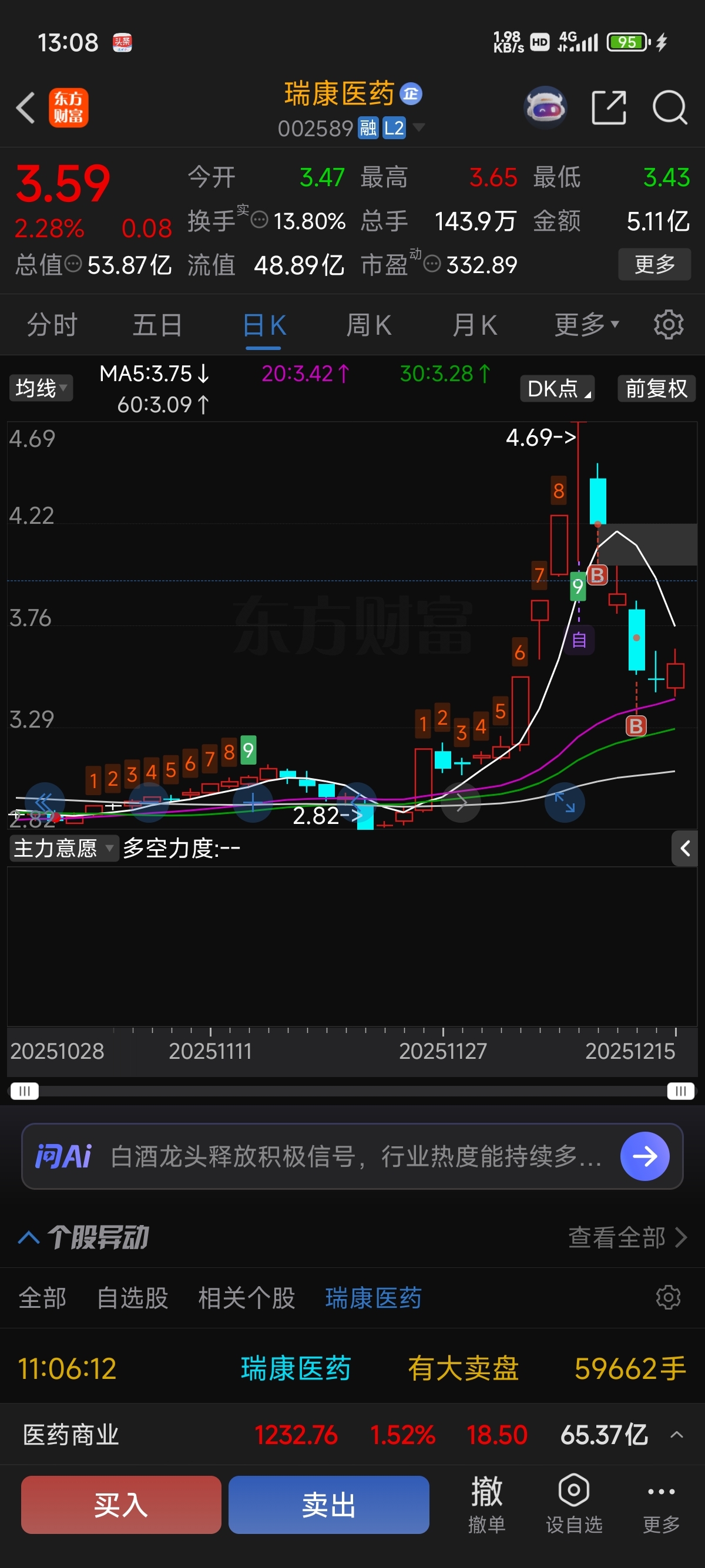 $瑞康医药(SZ002589)$ 以后再在跌停板上拿货我就是狗,