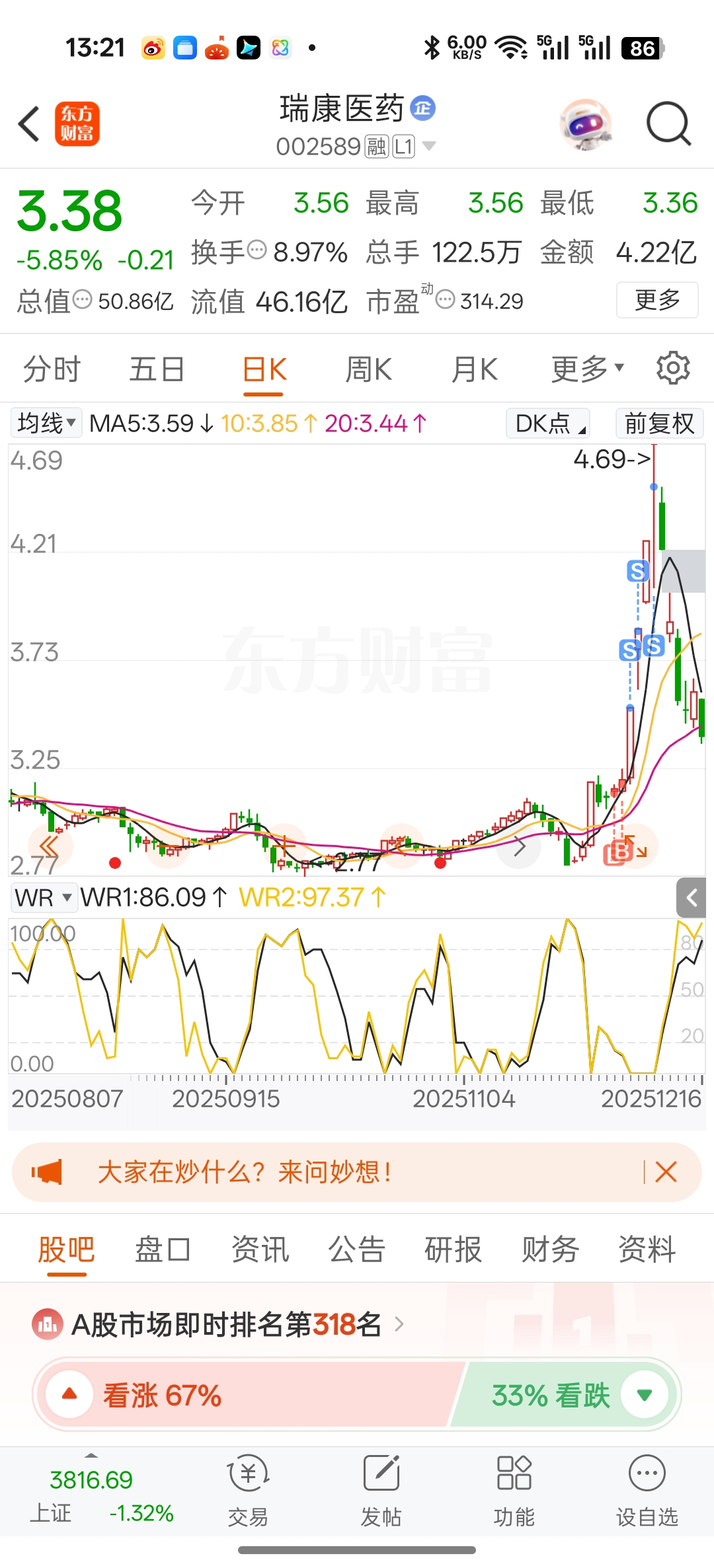 $瑞康医药(SZ002589)$ 我这个操作我自己都服
