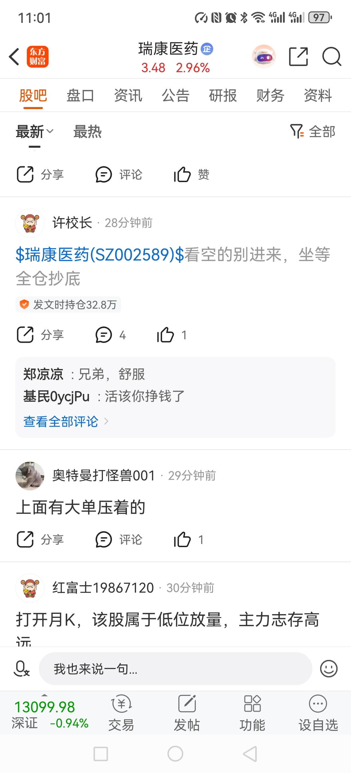 $瑞康医药(SZ002589)$ 都喜欢做T,昨天抄底,最高点全抛,我也来全仓做T