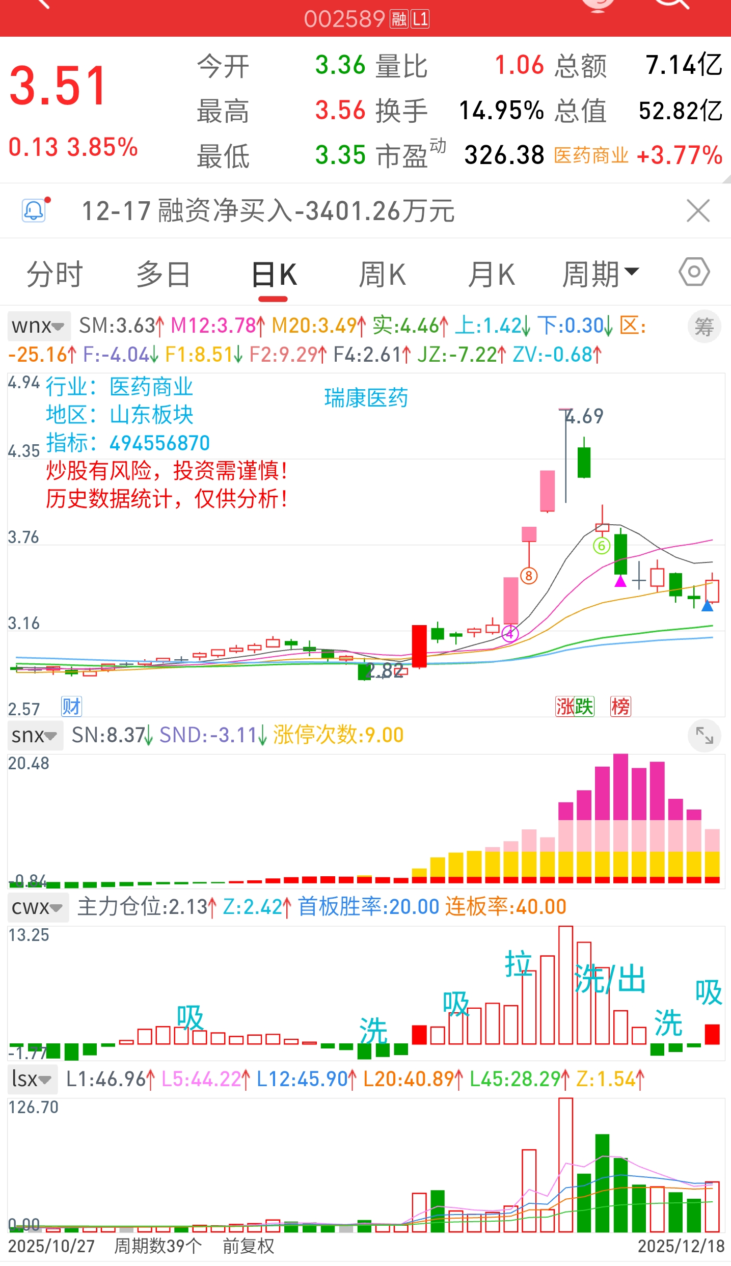 $瑞康医药(SZ002589)$ #炒股日记# #复盘记录# #强势机会# #股市怎么看# #收盘点评# k线上是落英形态,上穿M20。大阳线反包,很强势。