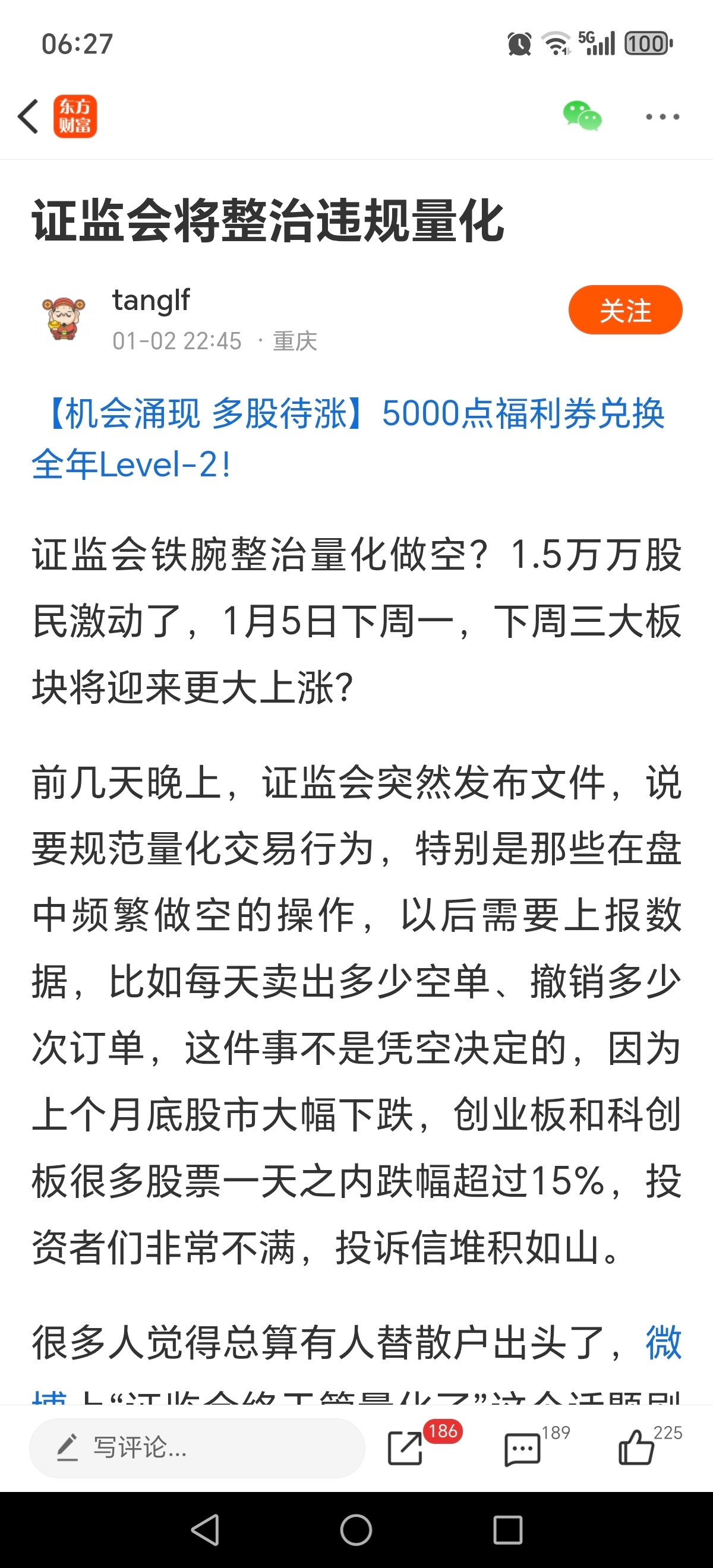温馨提示: 1.根据《证券法》规定,禁止编造、传播虚假信息或者误导性信息,扰乱证券市场;2.用户在本社区发表的所有资料、言论等仅代表个人观点,与本网站立场无关,不对您构成任何投资建议。用户应基于自己的独立判断,自行决定证券投资并承担相应风险。《东方财富社区管理规定》