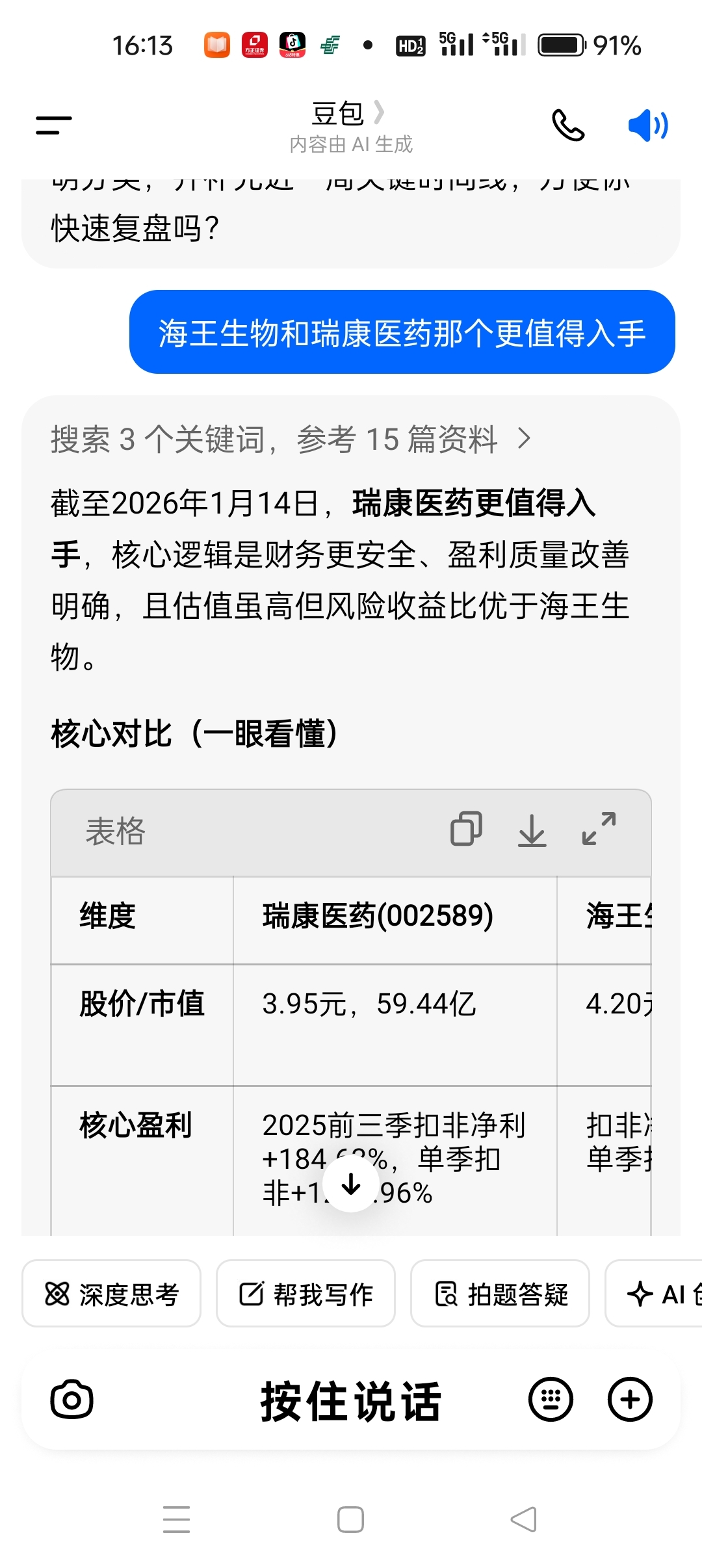 $瑞康医药(SZ002589)$ m的个巴子,纠结买海王,还是瑞康,还特意问了豆包!没想到,真没想到