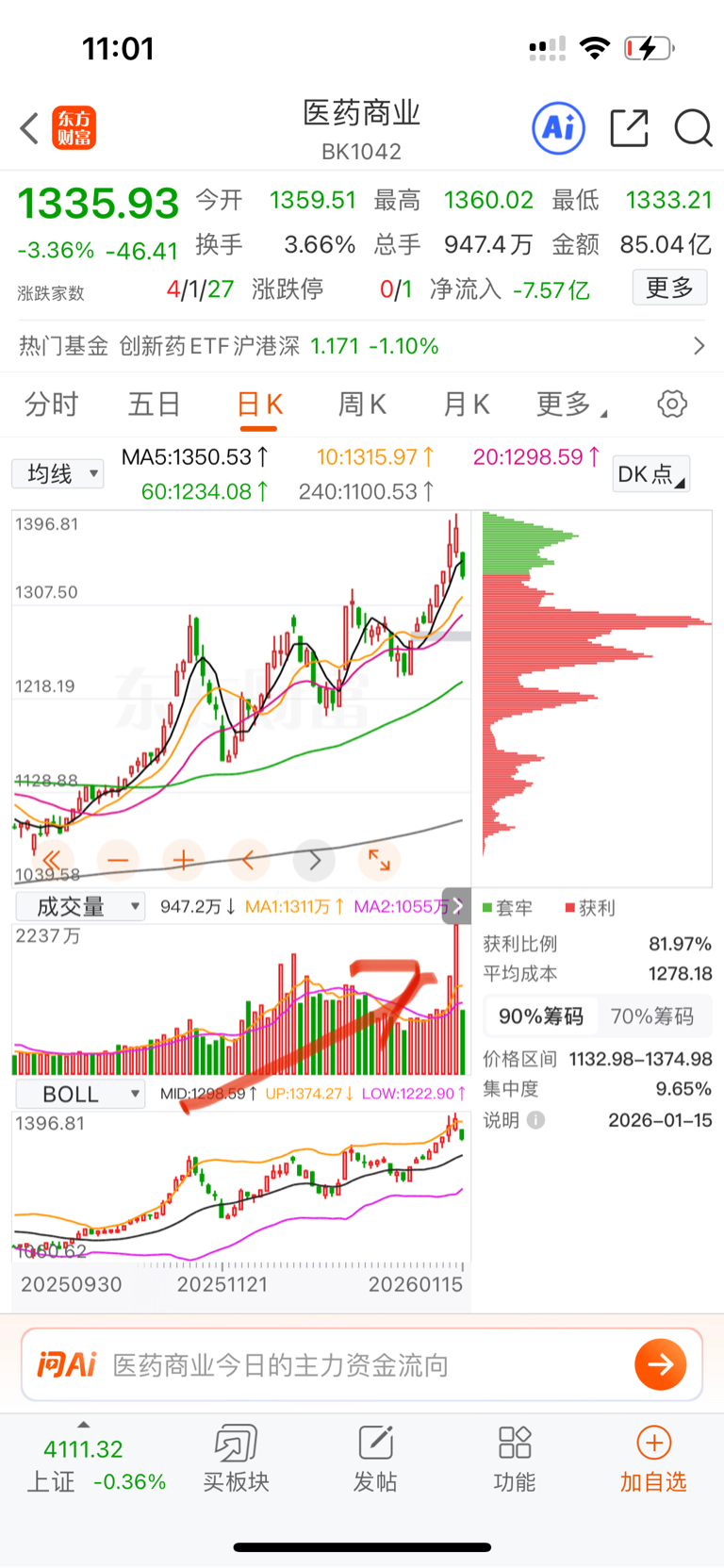 $瑞康医药(SZ002589)$ 医药这根天量出货,没一个月消化不了。短期没机会了