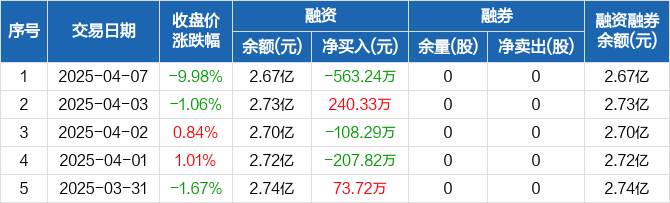 万安科技:融资净偿还563.24万元,融资余额2.67亿元(04-07)