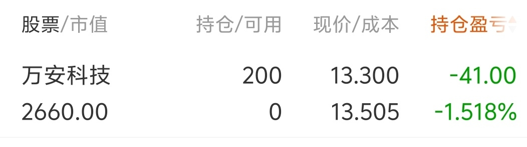 $万安科技(SZ002590)$ 尾盘以为不会跌了就脑袋发热的冲进来了,没想到还是被套一个多点