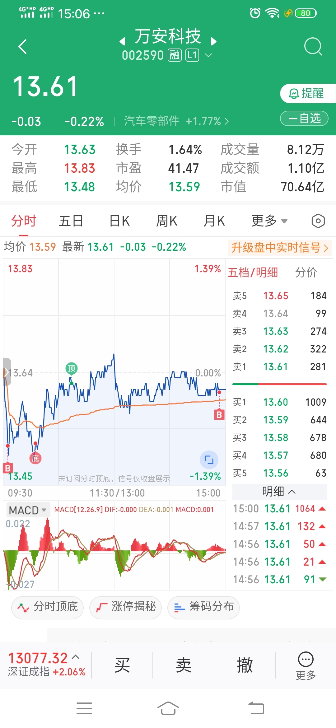 $万安科技(SZ002590)$ 昨天3个点卖了出去打野,今天又接回来了,各位塞班,你们还好吗?莫慌,哥今天晚上出去干活,把万安热度干上去