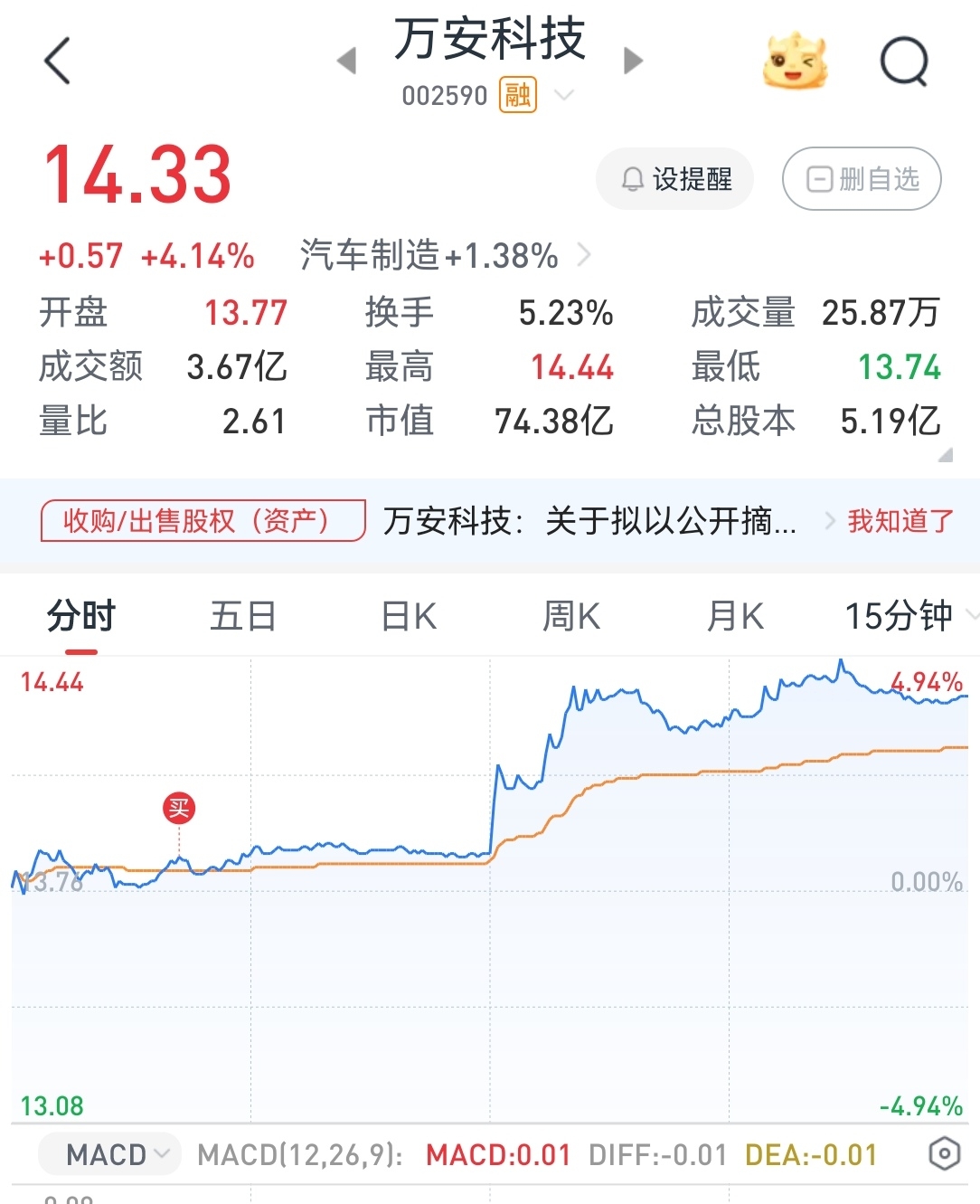 $万安科技(SZ002590)$ 三安不安了,来万安碰碰运气,明早十点半清仓如何。