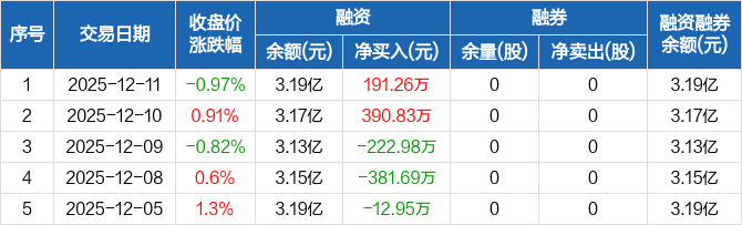 万安科技:融资净买入191.26万元,融资余额3.19亿元(12-11)