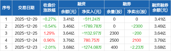万安科技:连续3日融资净偿还累计3433.99万元(12-29)