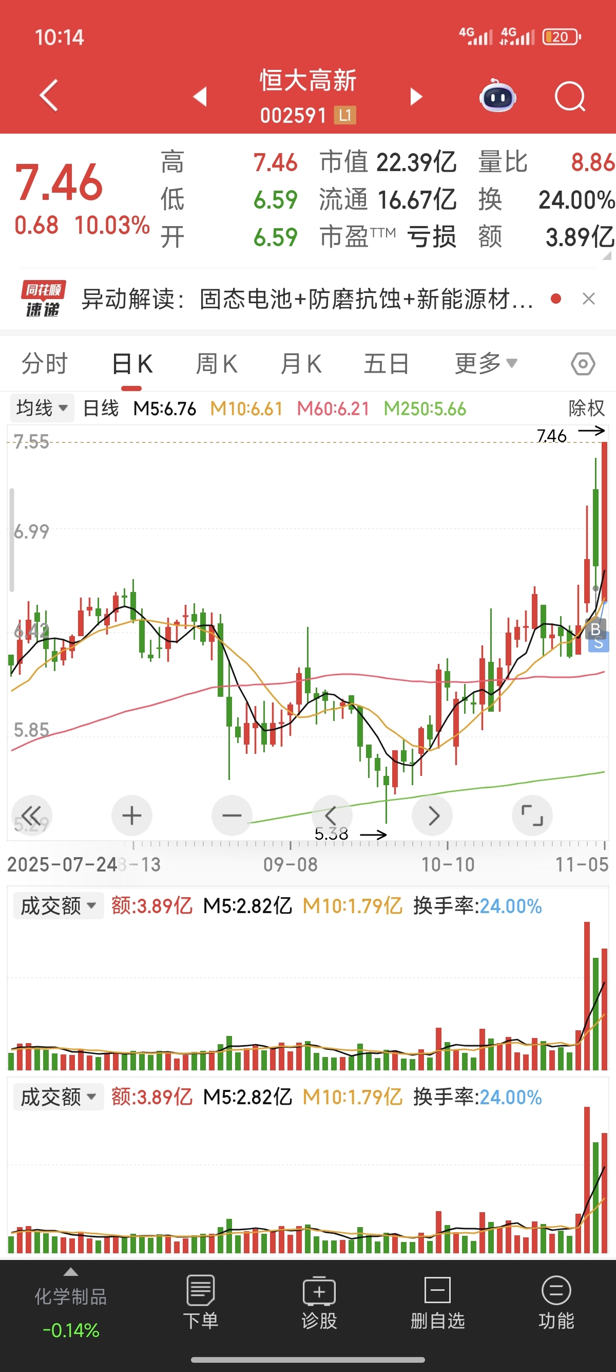 $恒大高新(SZ002591)$ 天天赚钱也不开心,我特么这里少赚了个近9个点……老子这暴脾气每次格局呢,你特么要震荡个三四天才拉,不格呢卖了就马上啦,老子买的其它两个涨停也开心不起来,连红三天我天天都在郁闷中度过……因为这票老子昨天满上了……